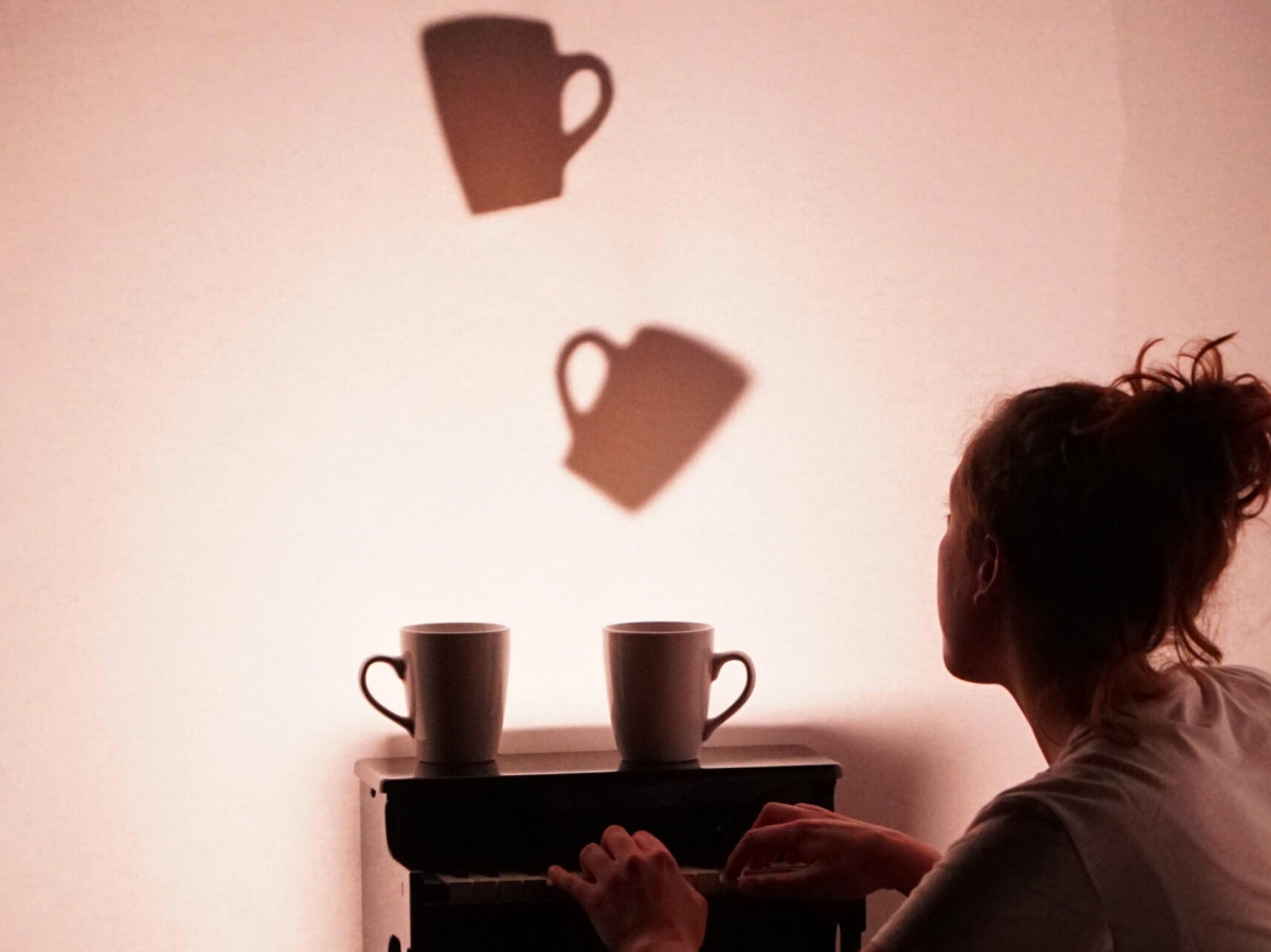 Schaduwen sluipen via de achterdeur naar binnen en stelen onze spullen! Alledaagse voorwerpen veranderen in wilde schaduwfiguren die hun eigen kleine dans van vrijheid uitvoeren. Ze worden groter en kleiner, splitsen zich en smelten weer samen. Zelfs de schaduwen van de poppenspelers vermenigvuldigen zich en gaan met elkaar in dialoog. Schaduwen worden wat ze maar willen zijn. Schaduwen worden lichamen, lichamen veranderen in schaduwen – en dan voelt alleen zijn ineens een stuk minder eenzaam.